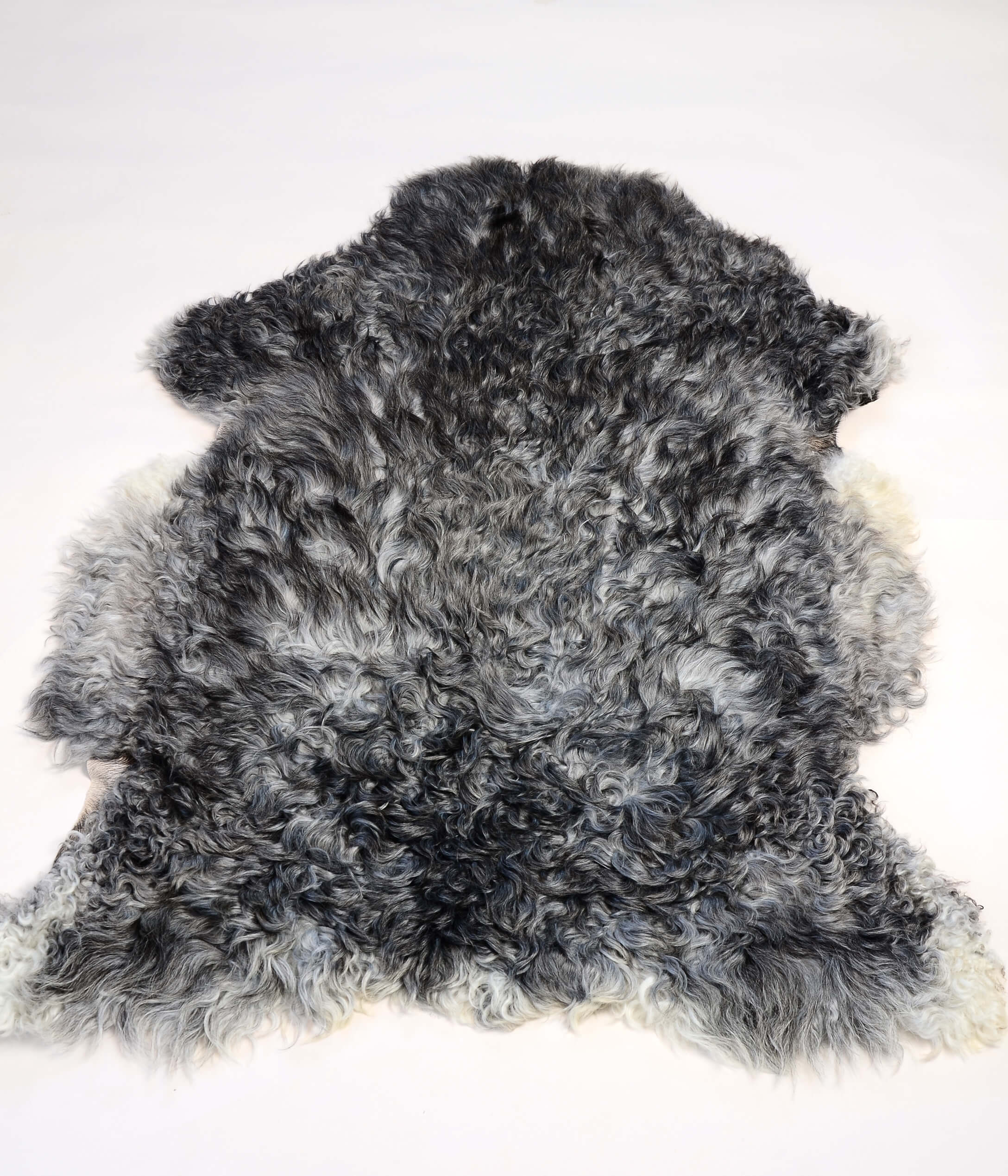 Fårskinn från gotlandsfåret med färgskiftningar i grå nyanser. Fårskinnen kommer från vuxna får och varje skinn får sin unika och rustika prägel. Fårskinnet har en hårlängd mellan 6-8 cm.