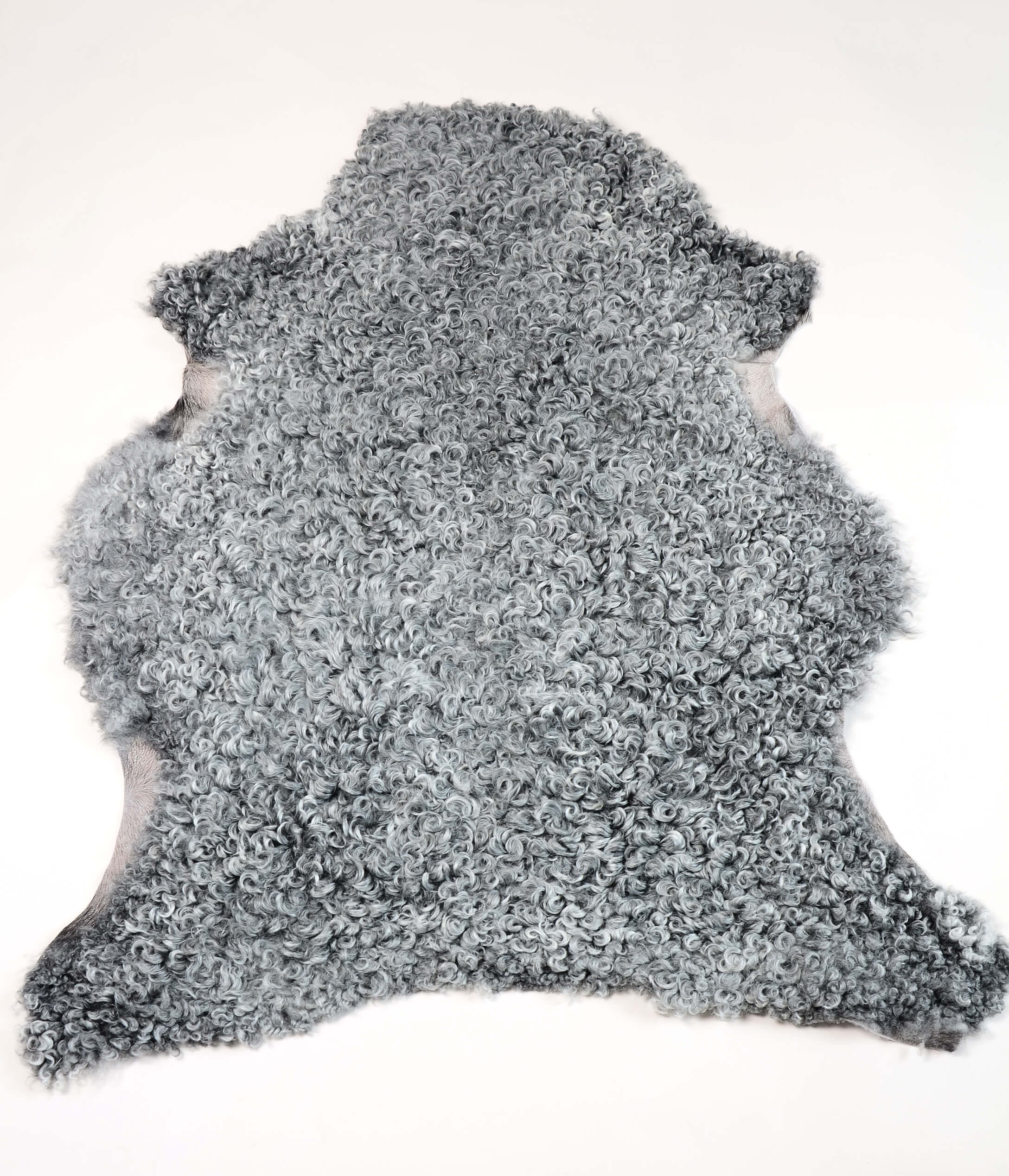 Mellangrått lammskinn från gotlandsfåret med medelstor lock. Skinnet är silkigt och glansigt.