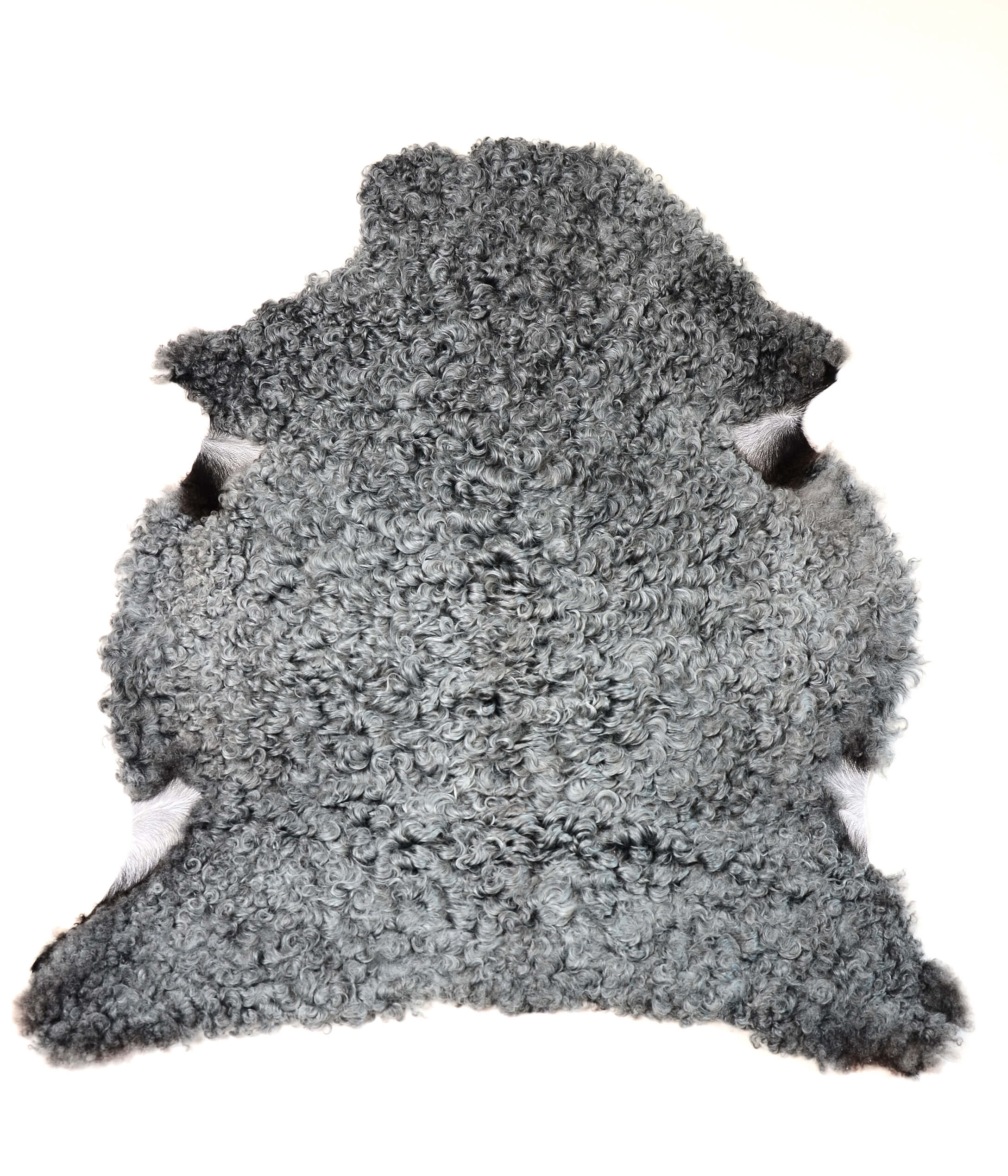 Mellangrått lammskinn från gotlandsfåret med stor lock. Skinnet är silkigt och glansigt.