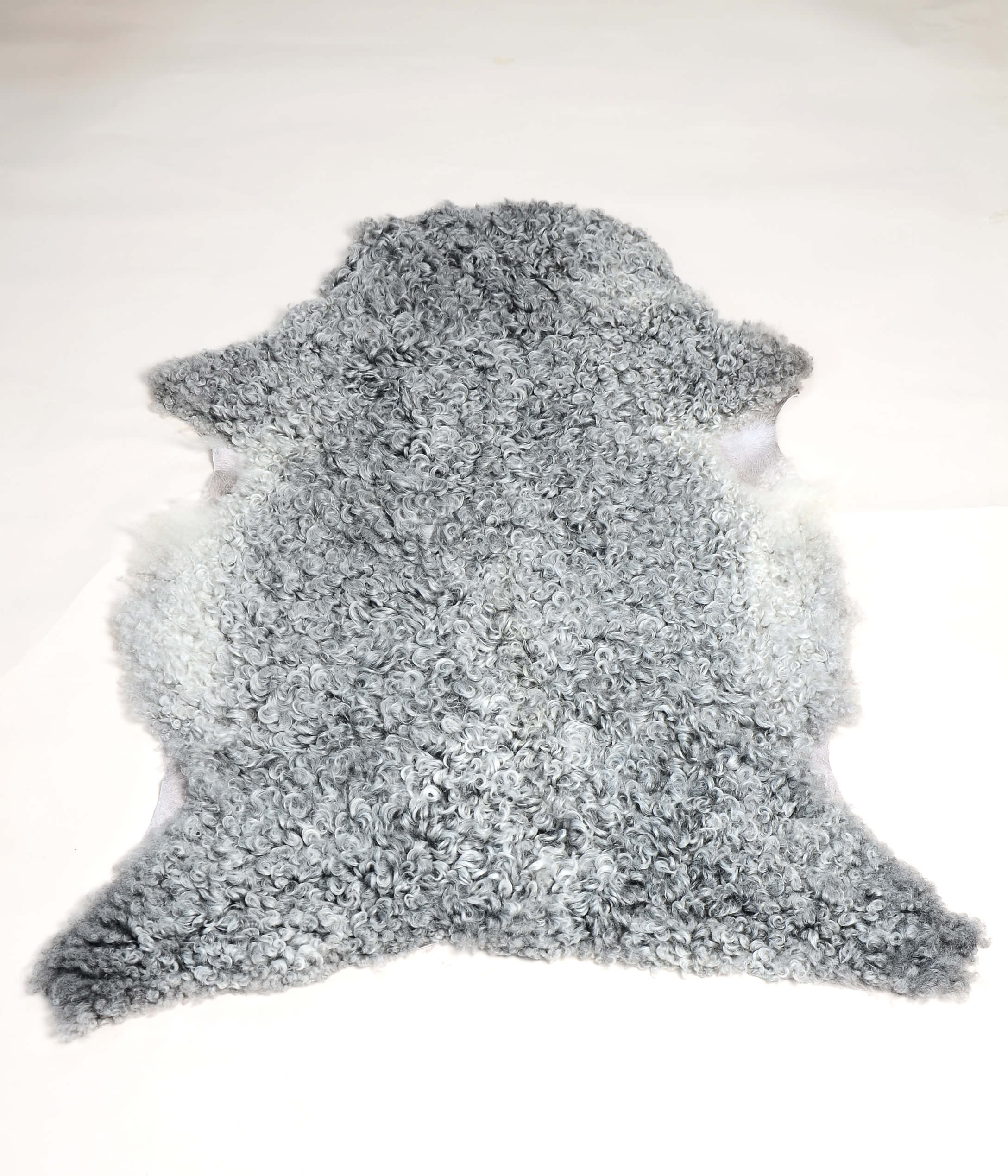 Ljusgrått lammskinn från gotlandsfåret med medelstor lock. Skinnet har en tät päls.