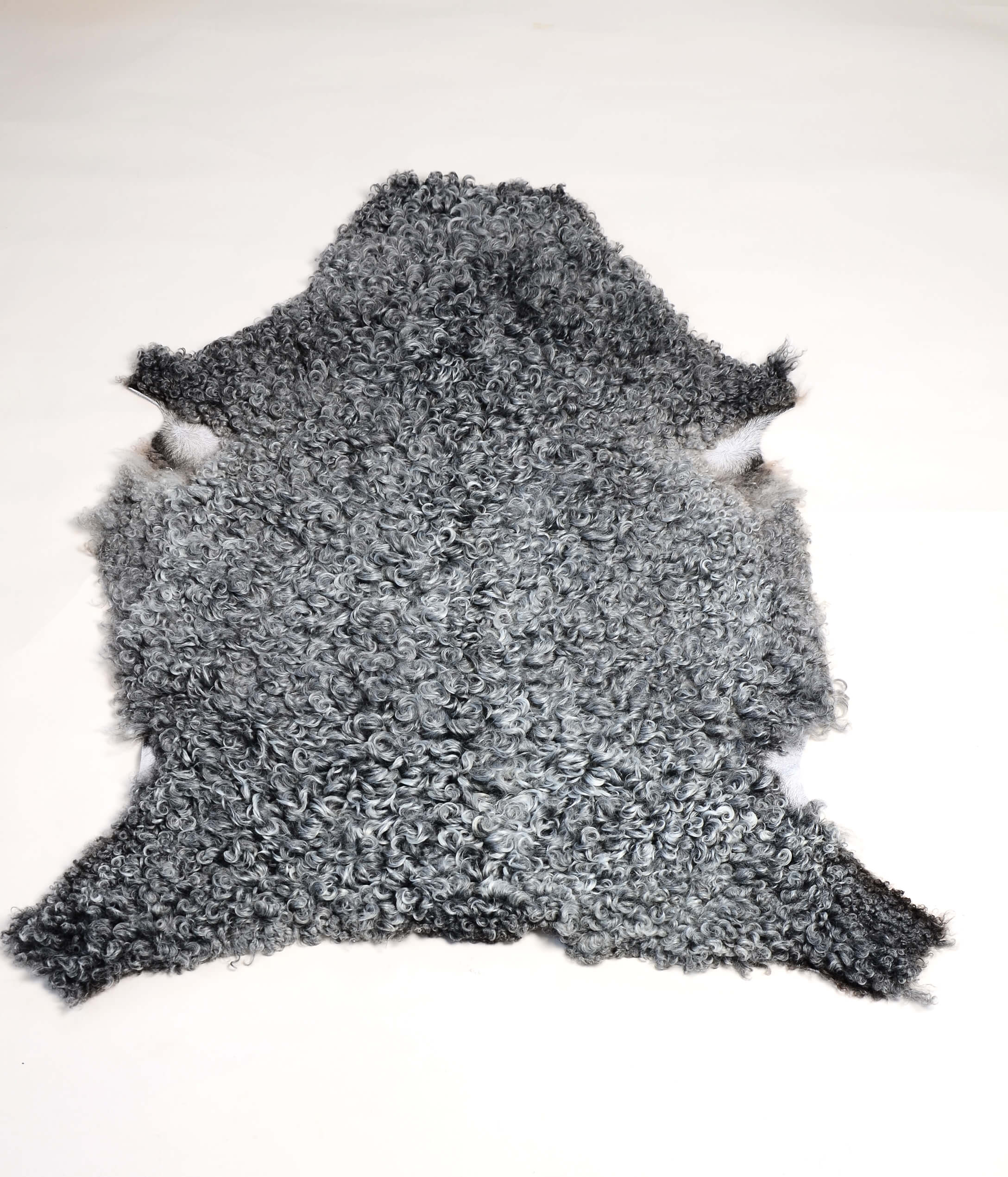 Grått lammskinn från gotlandsfåret med medelstor lock. Skinnet är silkigt och glansigt.