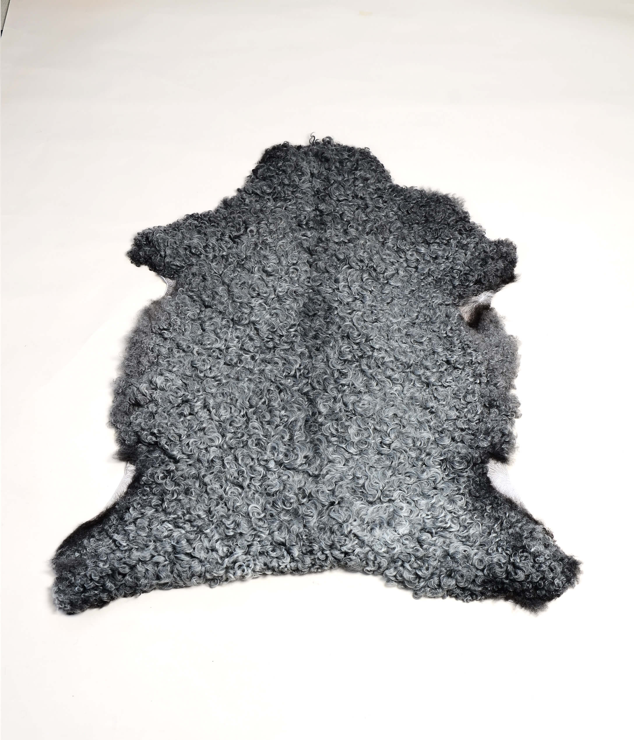 Grått lammskinn från gotlandsfåret med medelstor lock. Skinnet har en ganska tät päls.