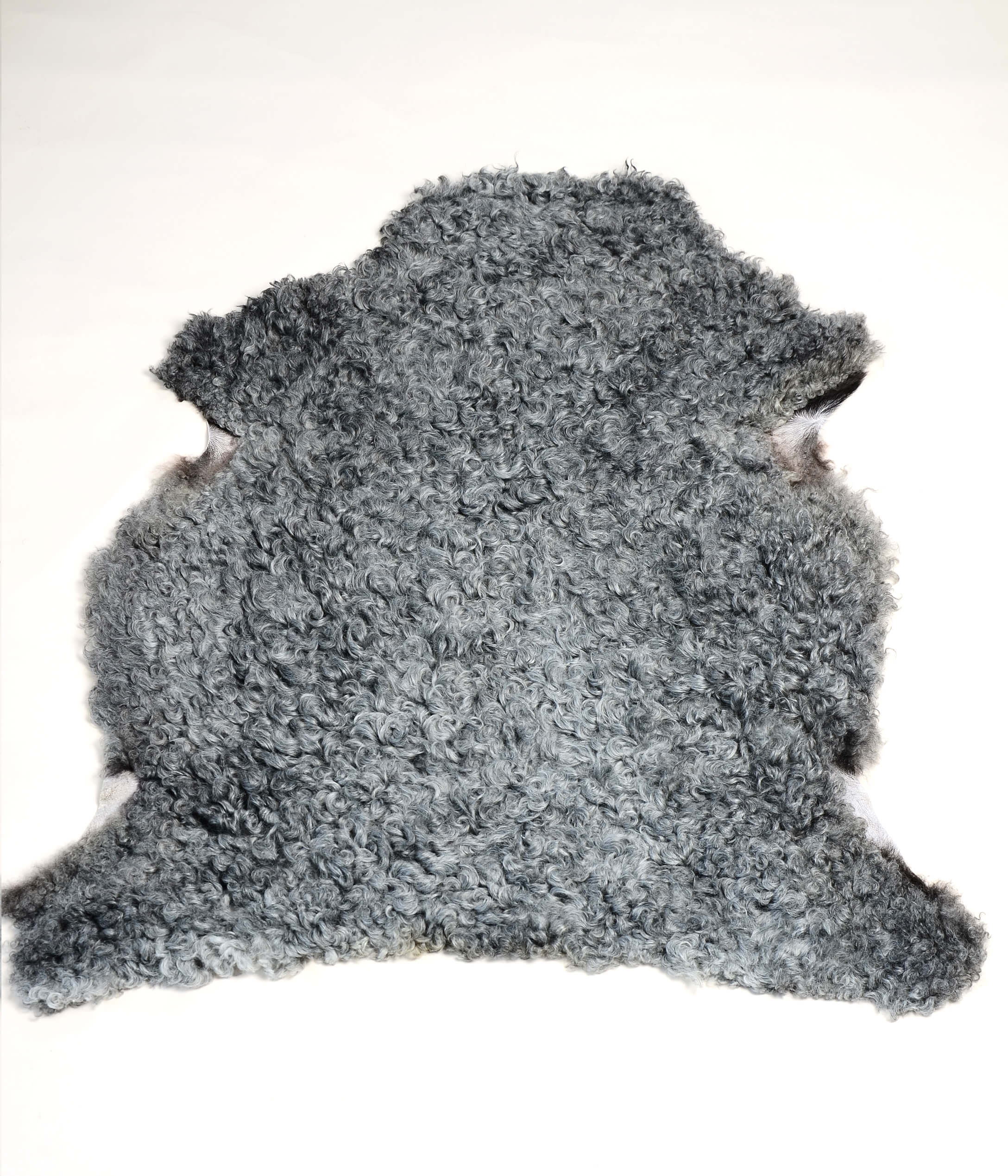 Grått lammskinn från gotlandsfåret med medelstor lock.