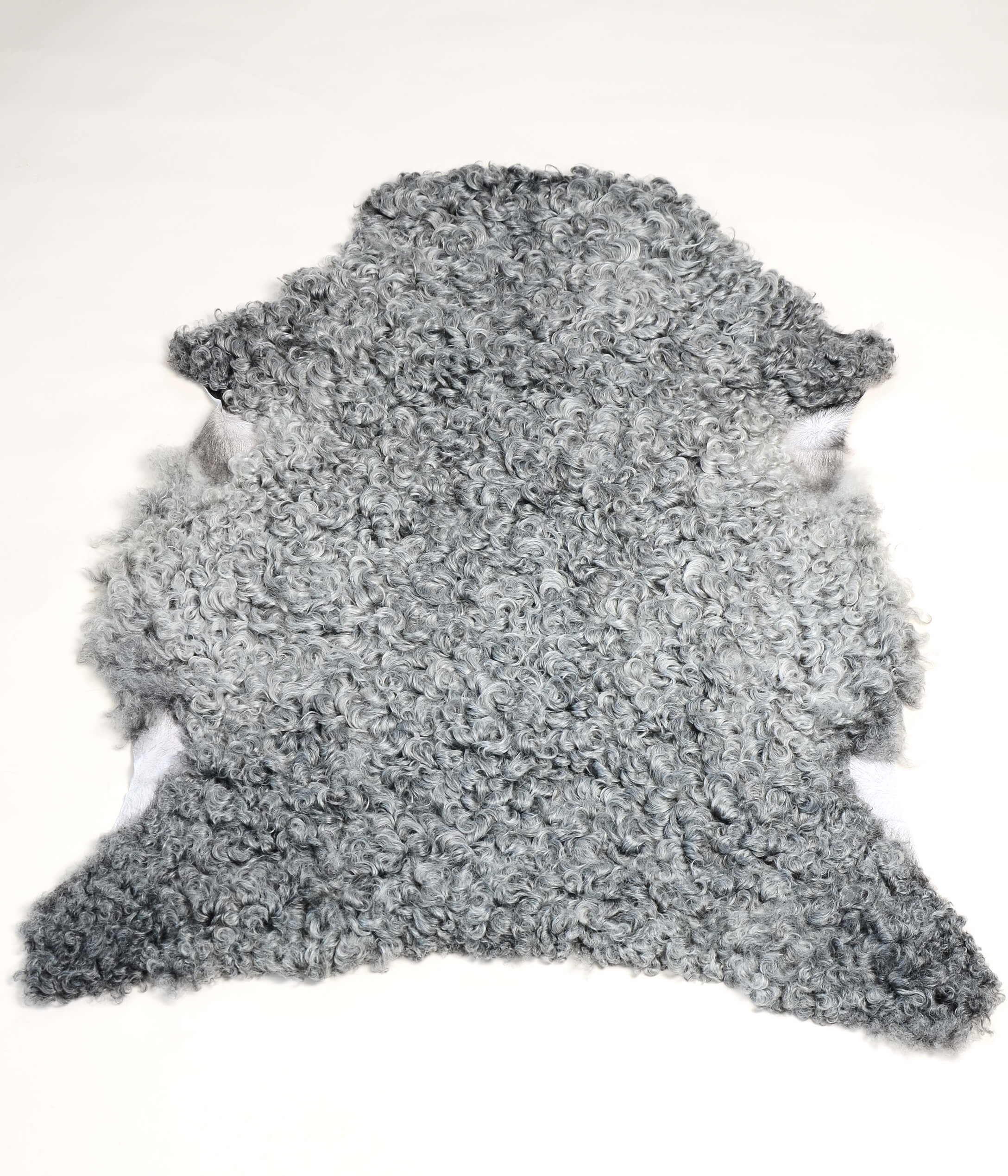 Ljusgrått lammskinn från gotlandsfåret med stor lock. Skinnet är silkigt och glansigt.