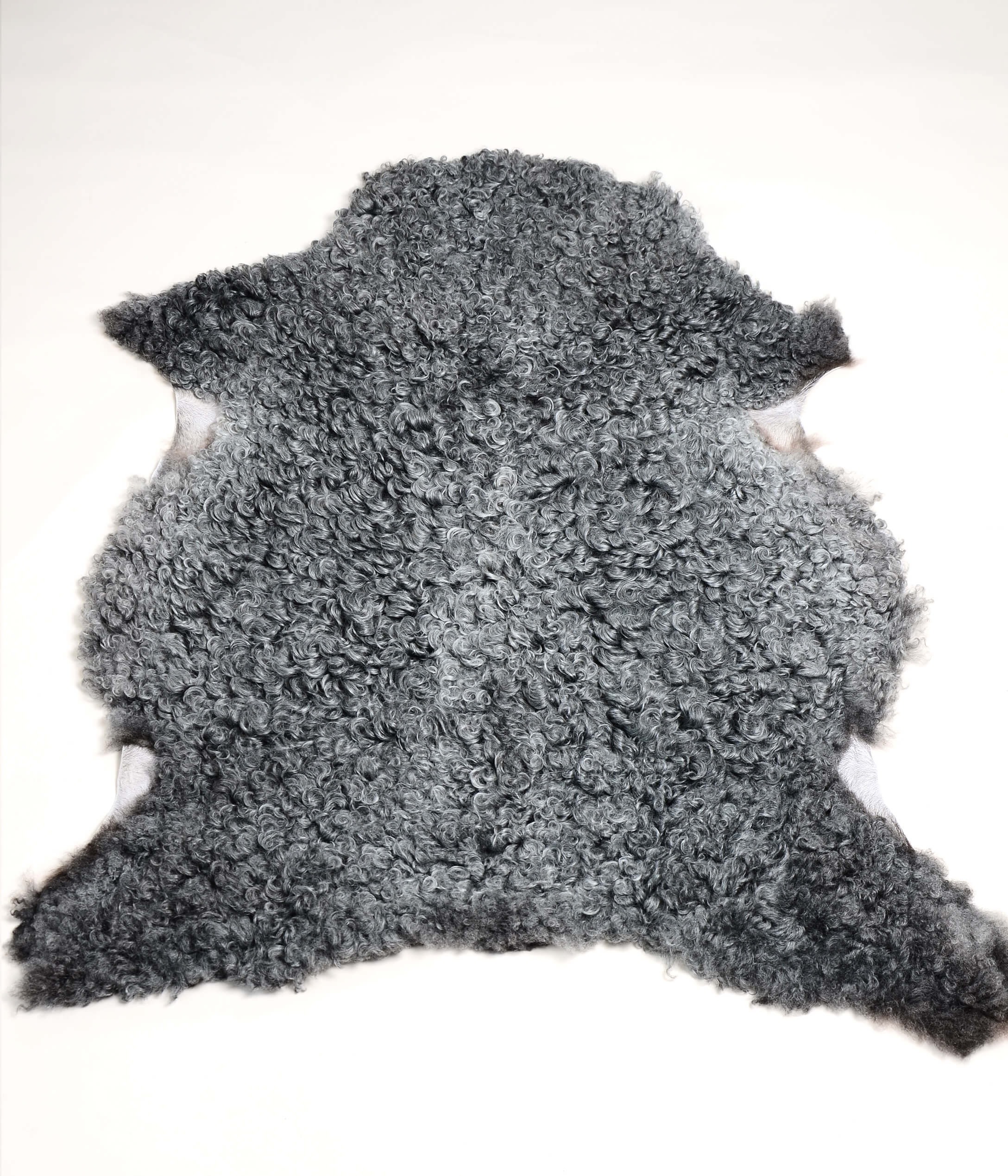 Mellangrått lammskinn från gotlandsfåret med medelstor lock. Skinnet är silkigt och glansigt.